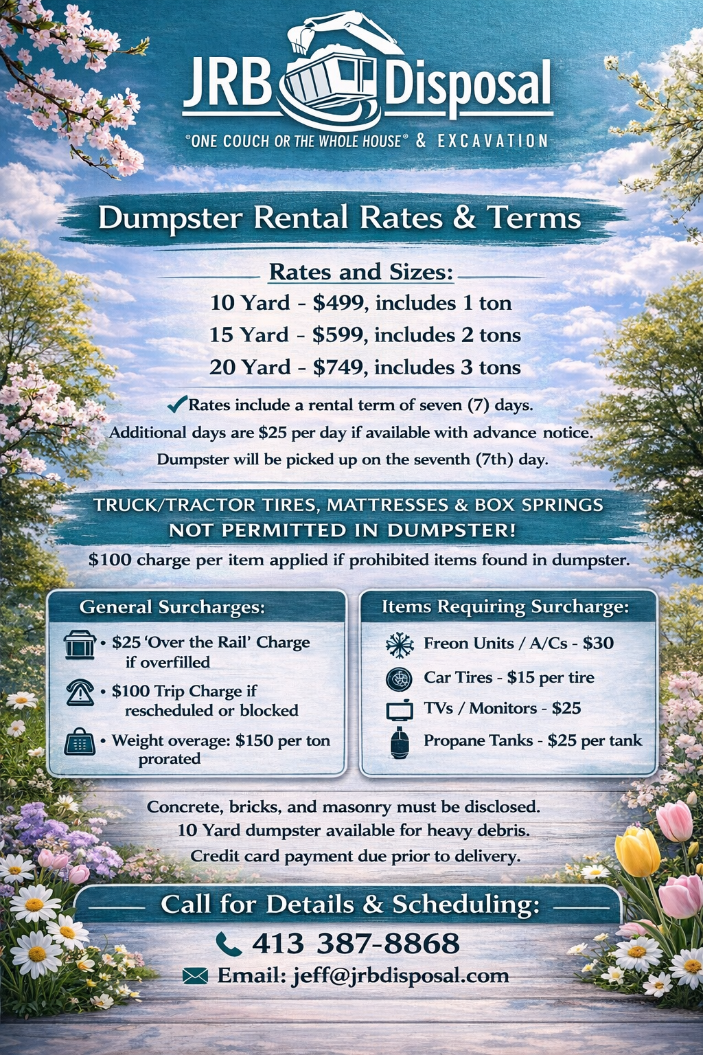 Rate and terms - dumpster rental